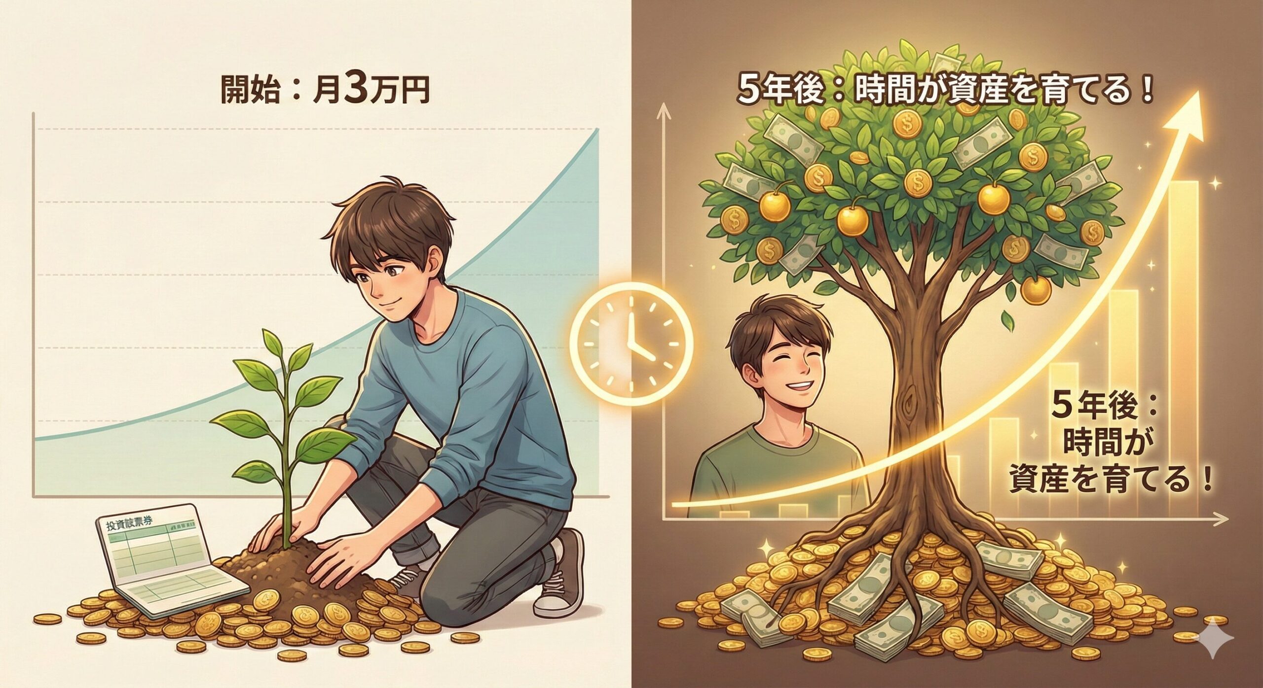 「お金がお金を生む」 投資を始める前、この言葉がどうしても信じられませんでした。 働かないとお金は入ってこない。収入を増やすには、残業するか、副業するか、転職するか。当時の私にとって、お金を得る手段はすべて「自分の時間を差し出すこと」でし... -