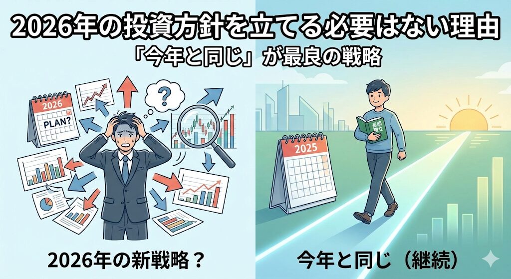 はじめに:年始に投資方針を見直す必要はない 新年を迎えると、「2026年の投資方針を立てよう」という情報が溢れます。YouTubeやSNSでは、「2026年の注目銘柄」「今年買うべき投資信託」といった情報が飛び交います。 「今年こそは、もっと良い成績を出し... -