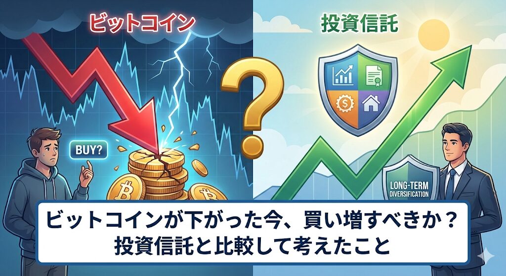 ビットコインが下がった今、買い増すべきか?投資信託と比較して考えたこと