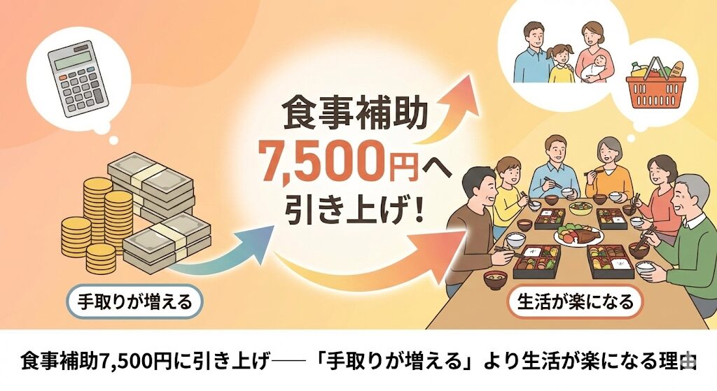食事補助7,500円に引き上げ──「手取りが増える」より生活が楽になる理由
