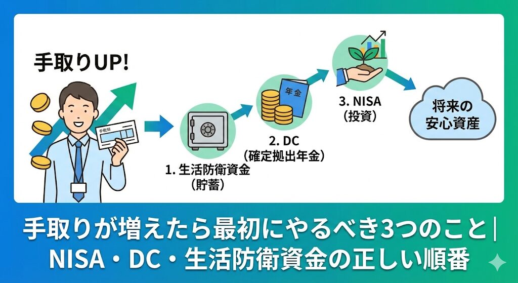 手取りが増えたら最初にやるべき3つのこと|NISA・DC・生活防衛資金の正しい順番