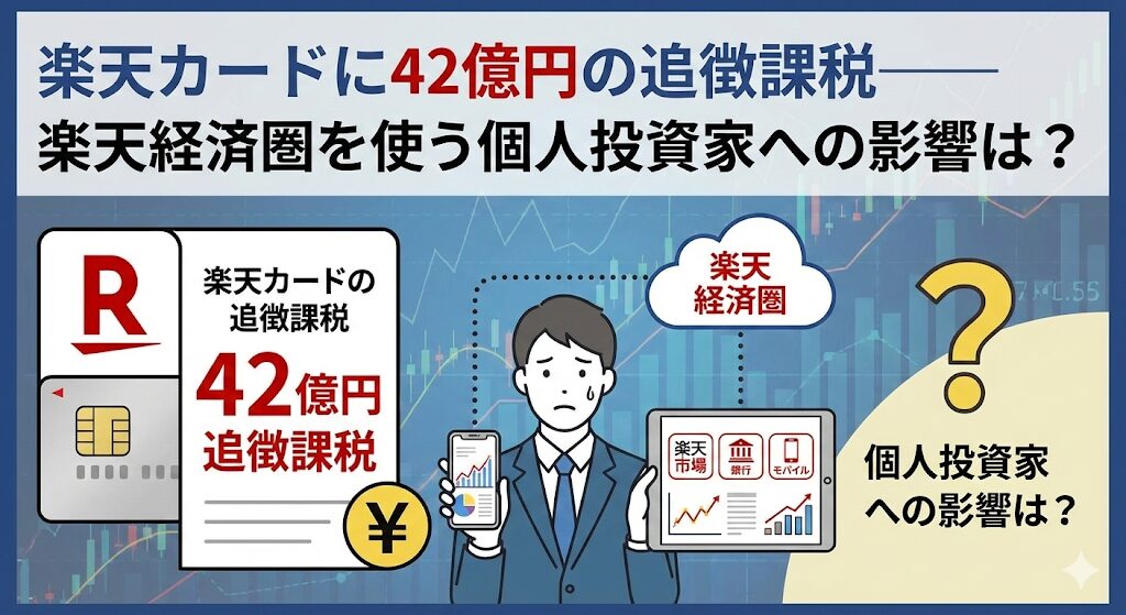 はじめに 2025年12月、楽天カードが東京国税局から約42億円の追徴課税を受けたと報じられました。 本記事は、「楽天カードを使っているけど、影響はあるのか」「楽天経済圏で投資しているが、今後どうなるのか」という方に向けて書いています。 私自身、楽... -