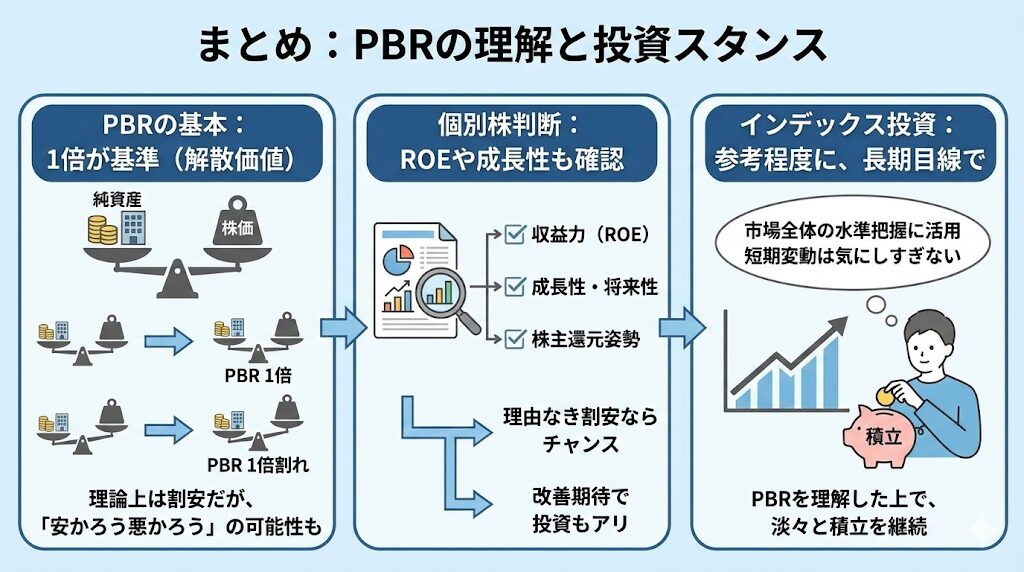 結論から言うと、インデックス投資家がPBRを過度に気にする必要はありませんが、「今どの水準か」を知っておく価値はあります。