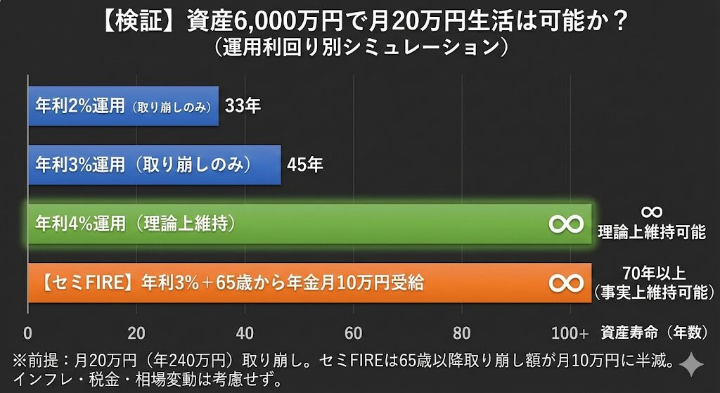 FIREを実現するための目安として語られる「6,000万円」という数字。確かに、年間支出が240万円(=月20万円)なら、理論上この金額で経済的自由を得ることができます。