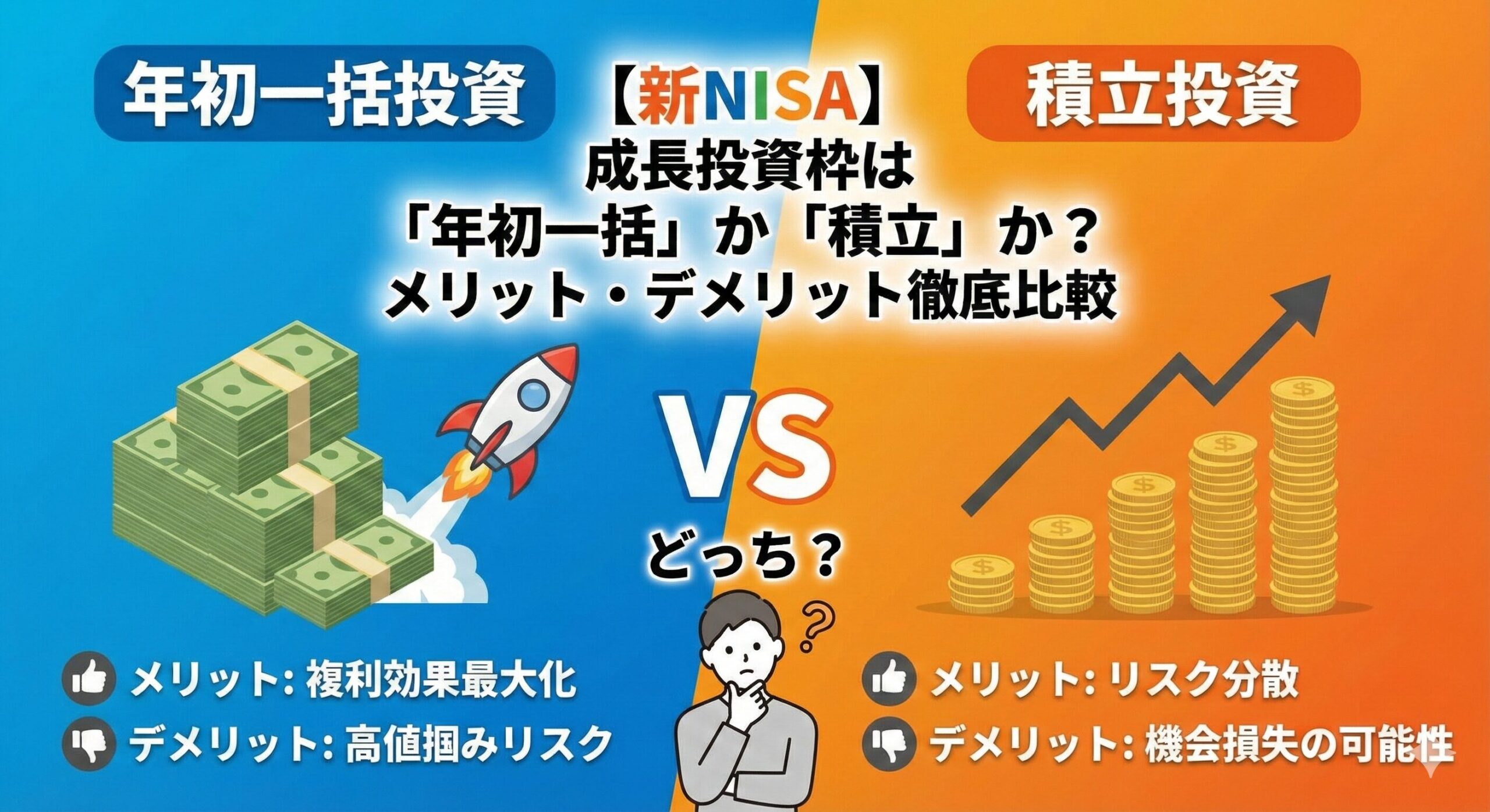 【新NISA】成長投資枠は「年初一括」か「積立」か?メリット・デメリット徹底比較
