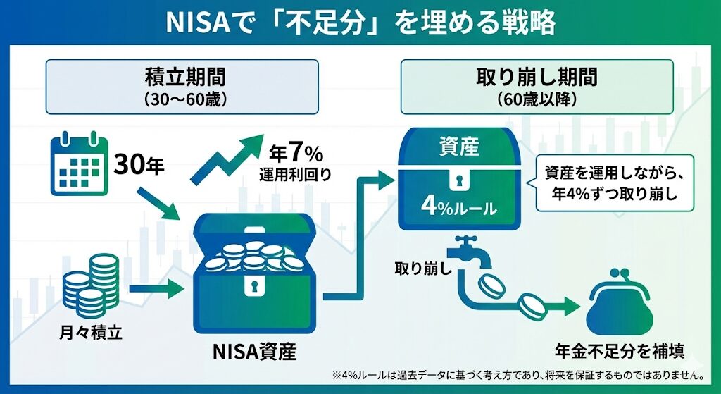 ここからが本題です。年金で足りない部分を、NISAでどう埋めるか。