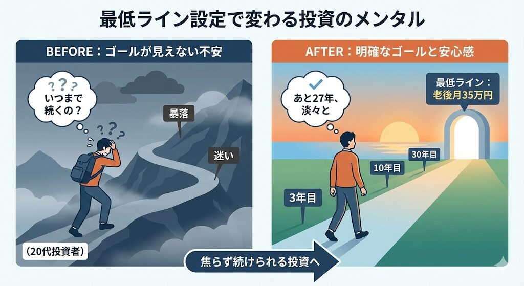 完璧を目指すのではなく、「これだけあれば何とかなる」というラインを設定する。それが、焦らずに投資を続けるコツです。