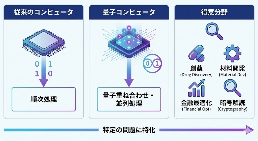量子コンピュータが「世界を変える」と言われる理由は、その応用範囲にあります。