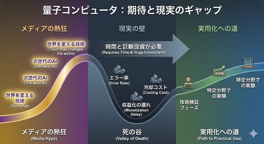 AIブームが一段落したと思ったら、次は量子。ニュースでは「量子関連株が急騰」「次世代技術の本命」といった見出しが並びます。