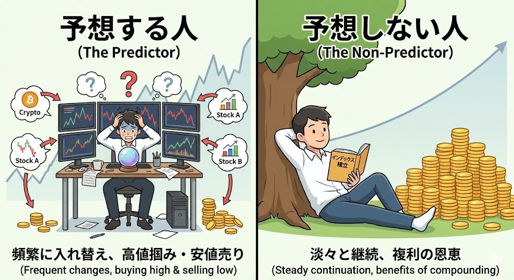 この記事では、「予想すること」がなぜ長期投資では不利になるのか、そして「予想しない投資」の方が有利な理由を整理します。