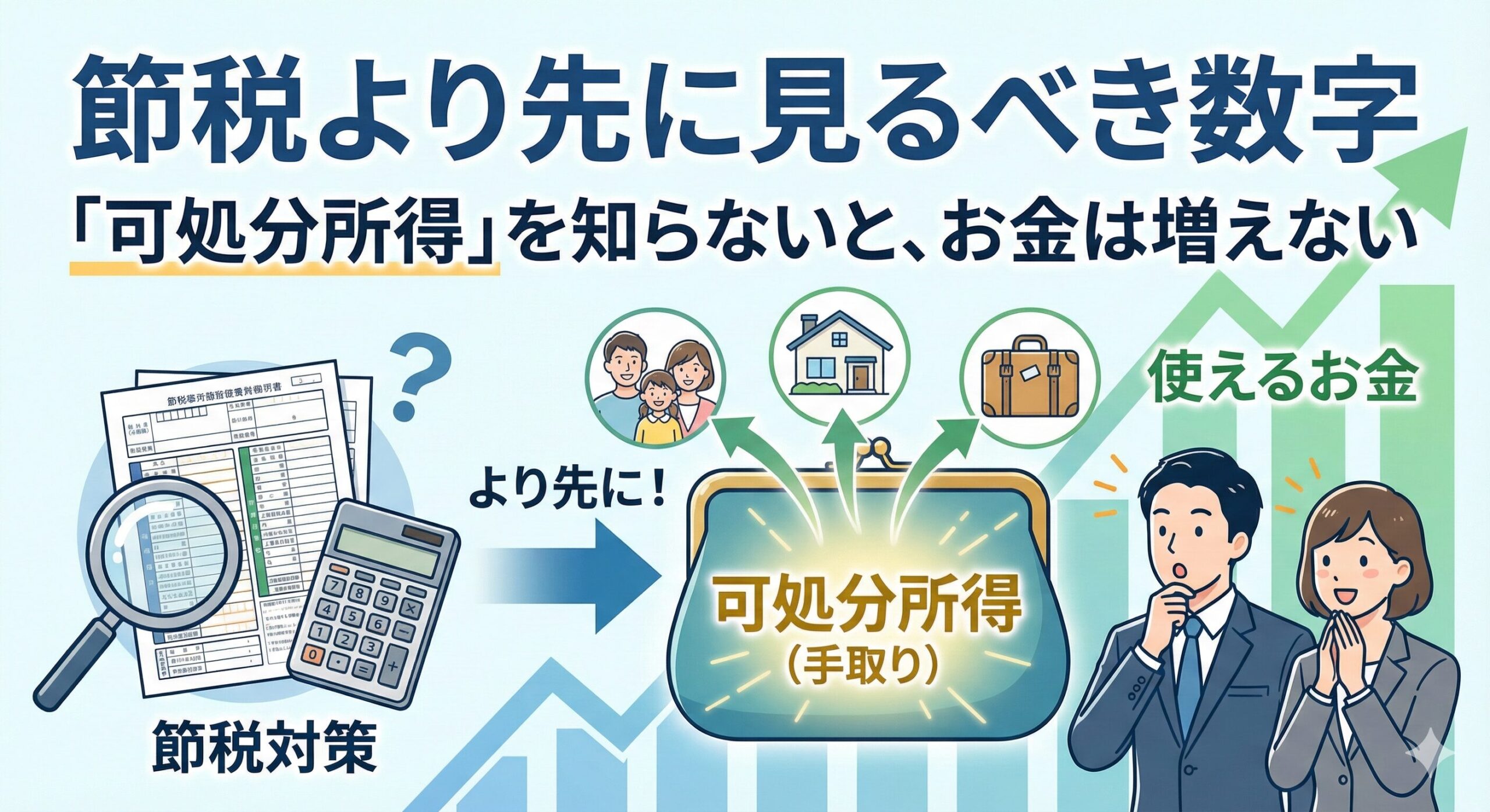 この記事では、節税よりも先に見るべき「可処分所得」という概念を整理します。節税は、豊かになるための「手段」です。でも、順番を間違えると、逆効果になります。