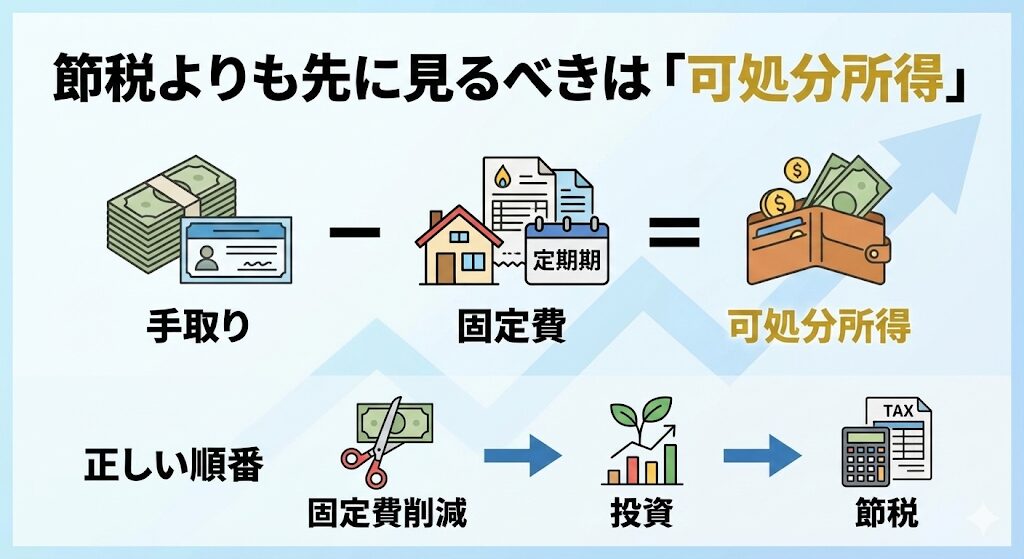 節税より先に、可処分所得を見る。この視点の転換が、お金の不安を減らす第一歩です。