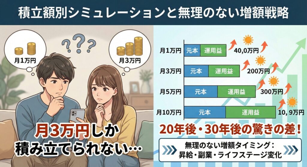 月3万円vs月10万円、20年後の差はいくら?──積立額別シミュレーションと無理のない増額戦略